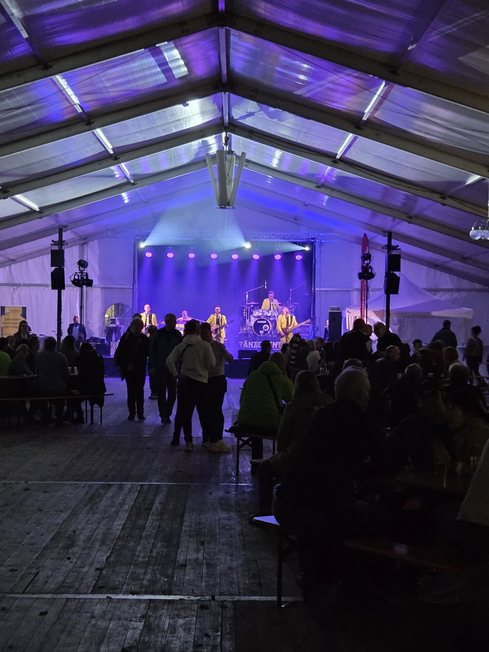 Highlight war die Band Taenzchentee. Sie spielte insgesamt fast 2 Stunden. Nach wenig Stimmung zu Beginn, steigerte sich diese im Verlauf der Party und nach der Haelfte der Show ging die Post ab. Das kann man leider nicht vom restlichen Programm behaupten. Planlose Interviews und langweilige Informationen bestimmten den Abend. Die Tombola zog sich sehr zaeh mit drei Ziehungen durch den Abend. Noch vor der Letzten verliessen wir das Heinz Steyer Stadion um 22.00 Uhr und fuhren mit der Strassenbahn nach Hause.