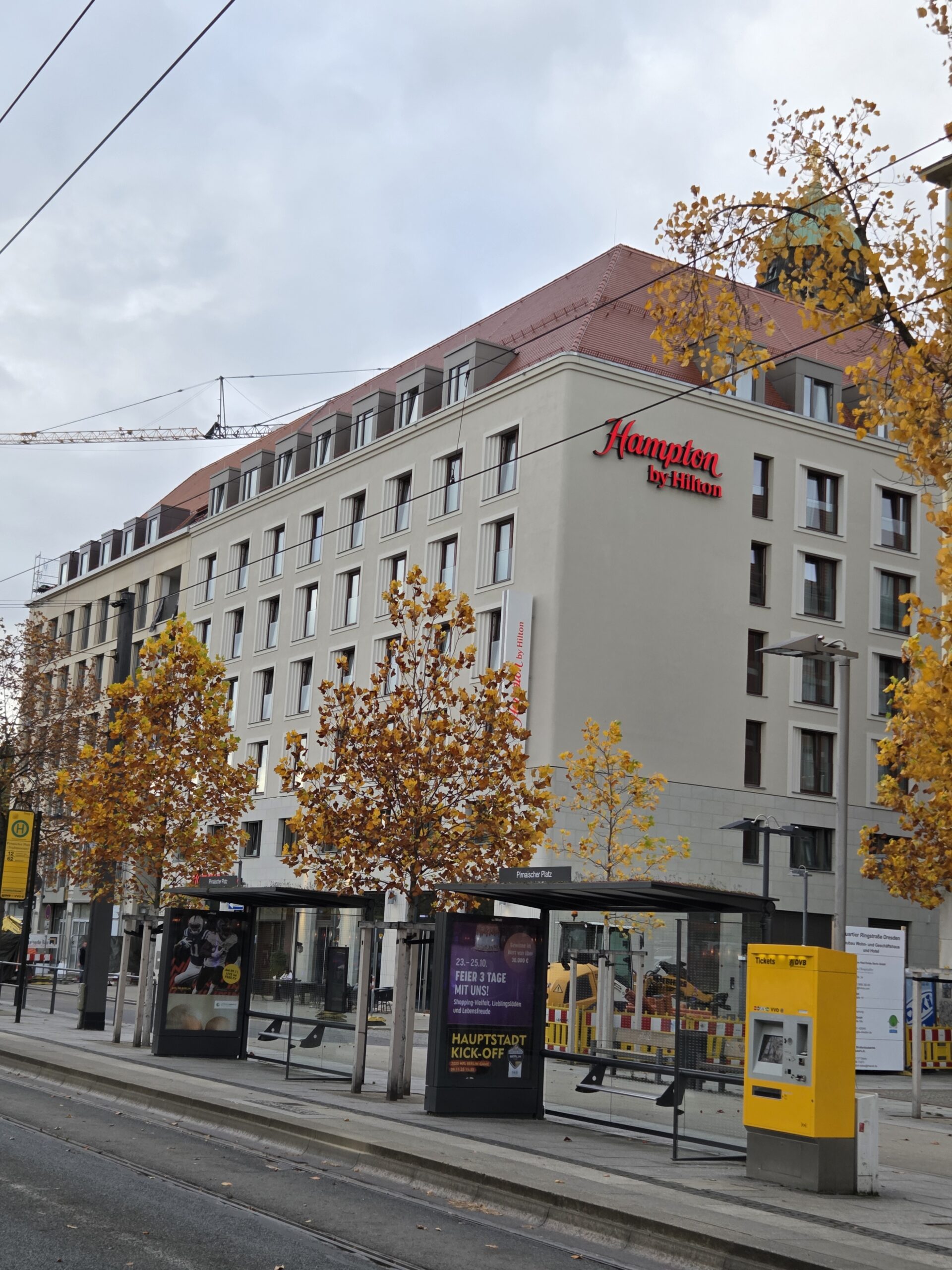 Puenktlich kamen wir in Dresden an und verstauten unsere Koffer ^ Taschen erst einmal in unserem Hotel Hampton by Hilton.