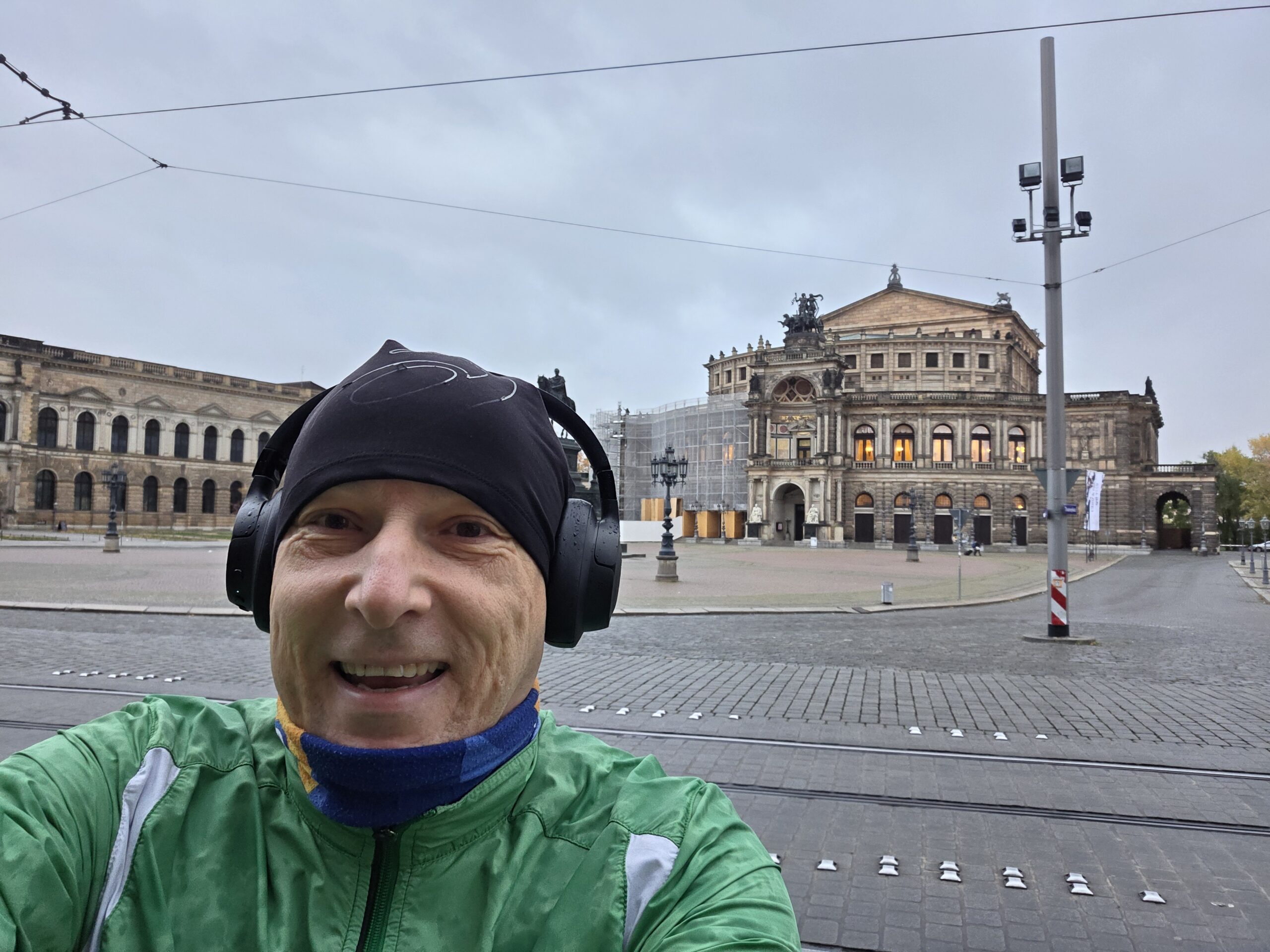 Die Sonne schien bei Temperaturen zwischen 8 und 12 Grad und so kundschafteten wir noch ein bisschen durch das wuenderschoene Dresden. Zuvor lag eine schlafreiche Nacht, ein gutes Dehnprogramm und ein leckeres Fruehstueck hinter uns.