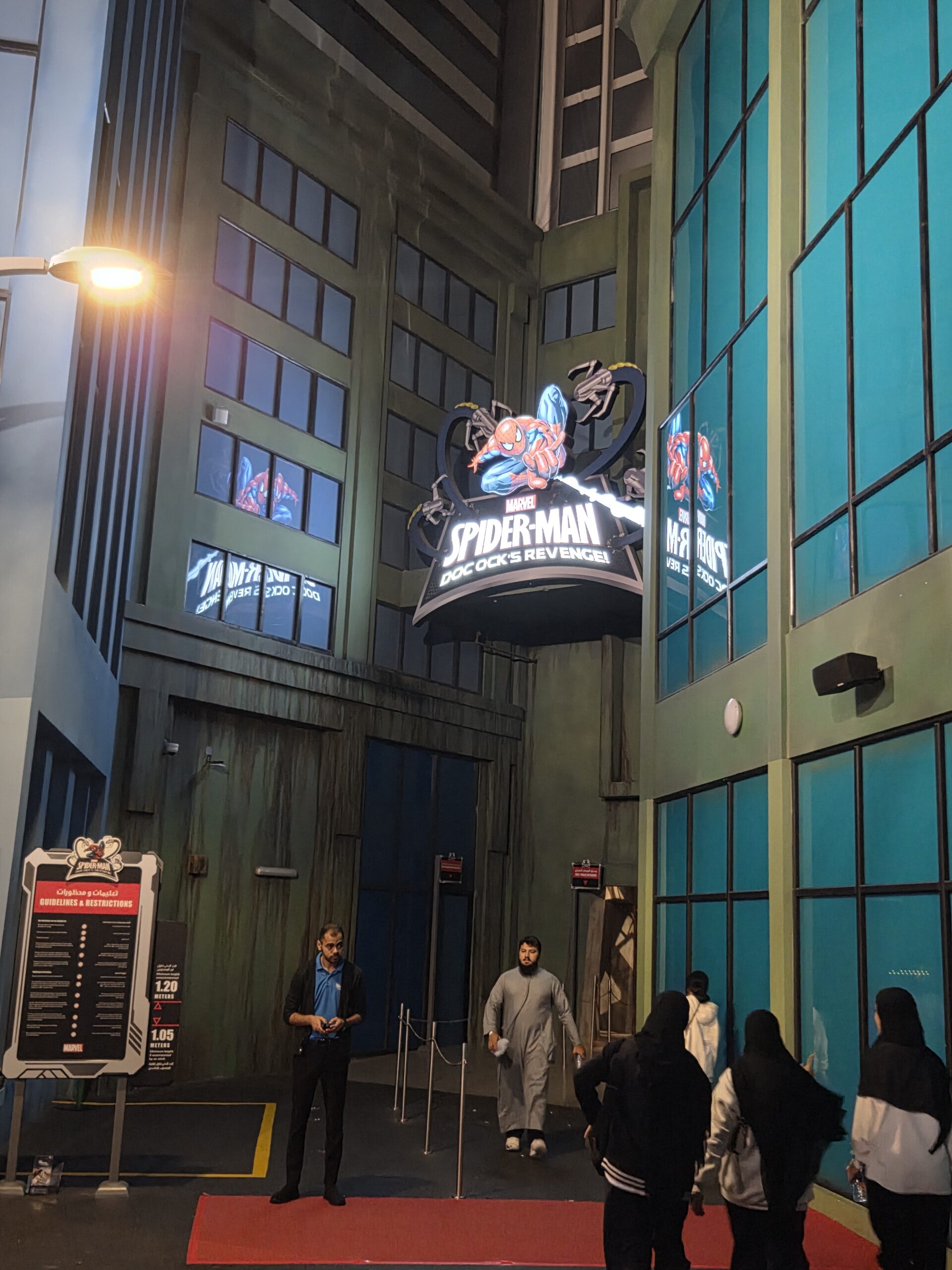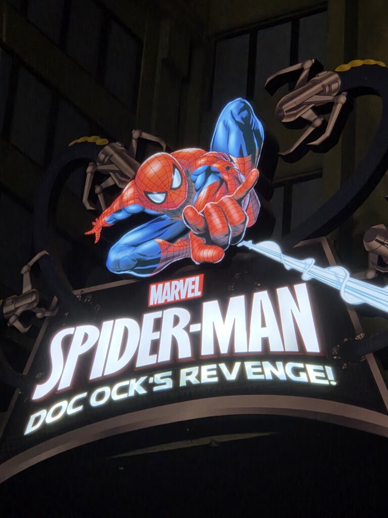 Ein wirklich großartiges Spektakel. Direkt daneben ist der Eingang zum Spinning Coaster Spiderman Doc-Ock’s Revenge. Der Spinning Coaster aus dem Hause MACK Rides verläuft zum Großteil im hinteren Teil der Halle, bietet aber einige Effekte und ein intensives und spannendes Layout. In jedem Fall die familienfreundlichste Achterbahn in der IMG Worlds of Adventure.
