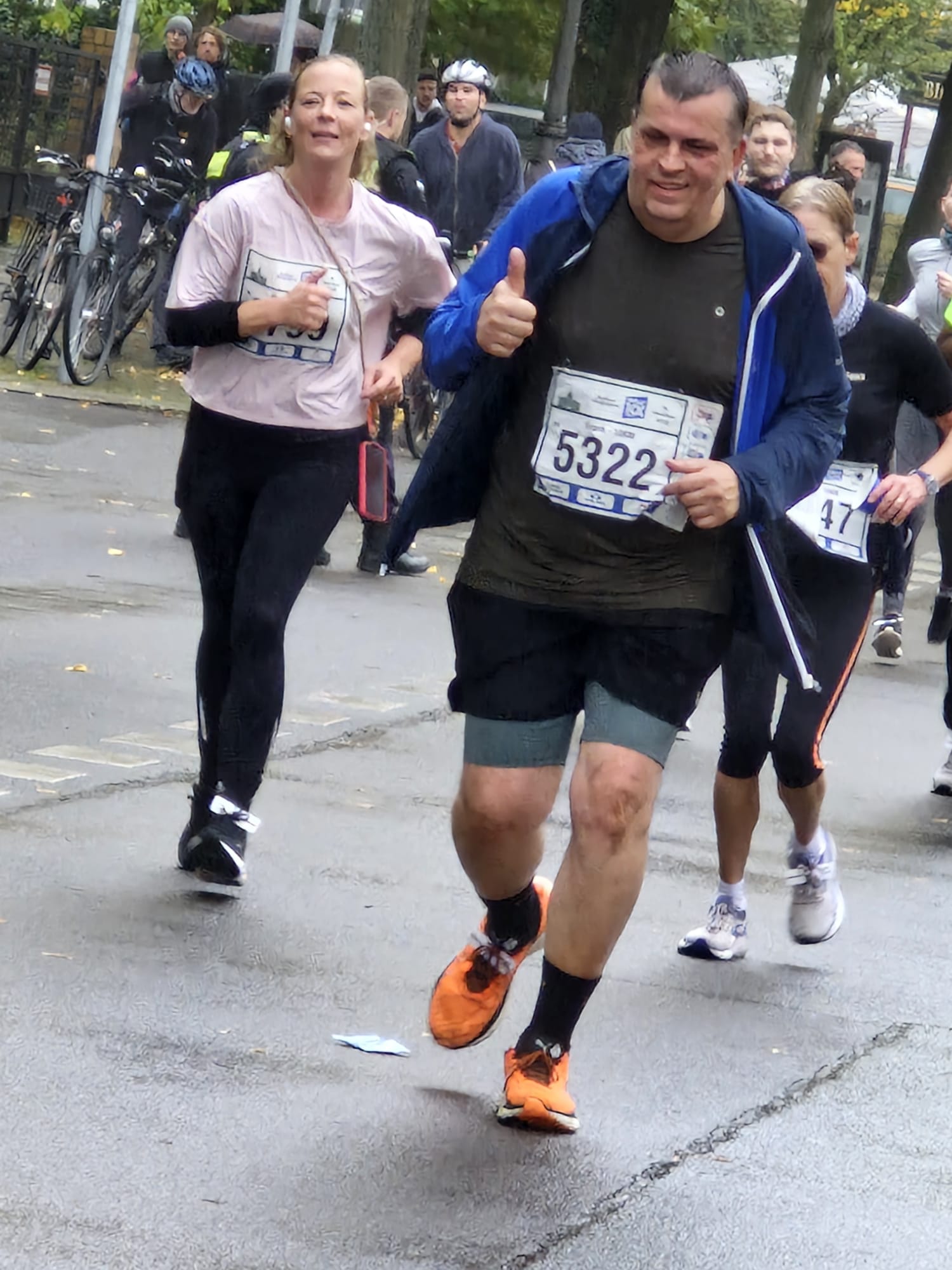 Michael lief beim Hamburg Marathon mit Wadenproblemen eine 3:56 h und musste daher verletzungsbedingt auf den 25er verzichten.
