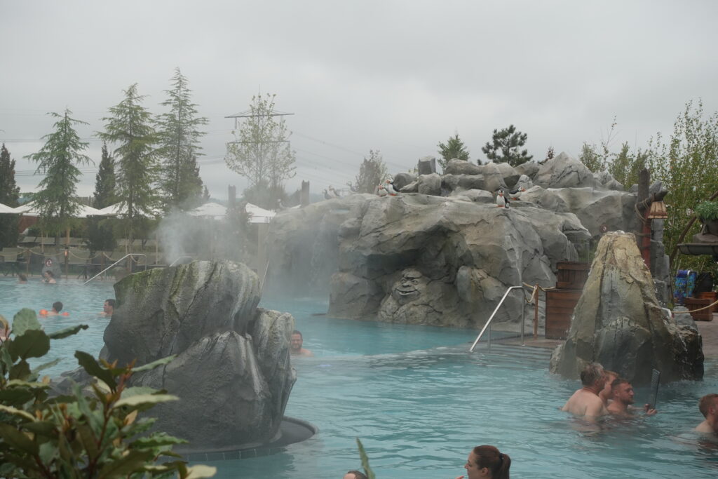 Trotz 10 Grad Aussentemperatur bei viel Regen genossen wir bei 32 Grad Wassertemperatur die Aussenbereiche.